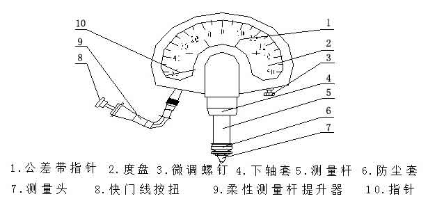 7.使用时,请勿用强力推拉测量杆,以免损坏机芯或影响精度。